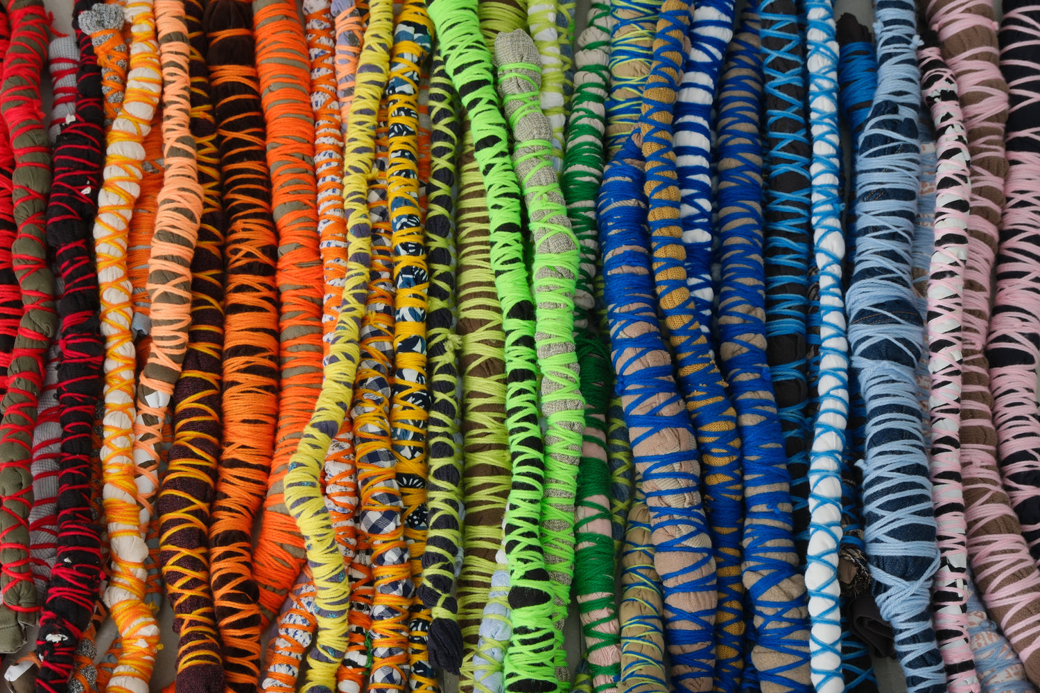 実際に捨てられた洋服をねじったところ、どれも個性的な生き物のように変わり、無機質な素材がふたたび息を吹き返したように感じました。